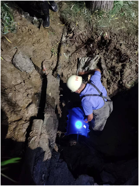 由于管道的周邊是堅實的水泥層, 再加上漏失的自來水不斷涌出路面,阻礙了管道的快速搶修,通過使用大功率水泵將自來水排到坑外,維修人員爭分奪秒、輪流上陣進(jìn)行了管道修補,于當(dāng)晚凌晨修復(fù)完畢、開閘通水。